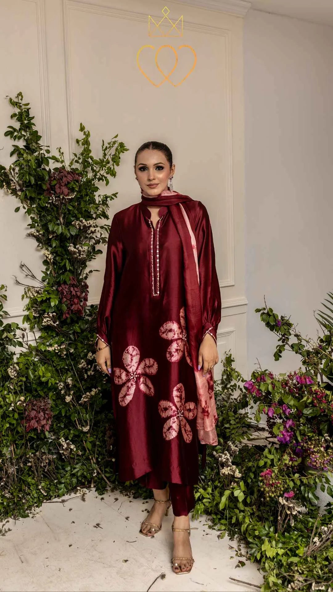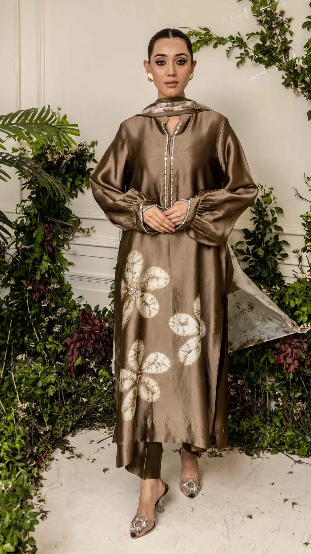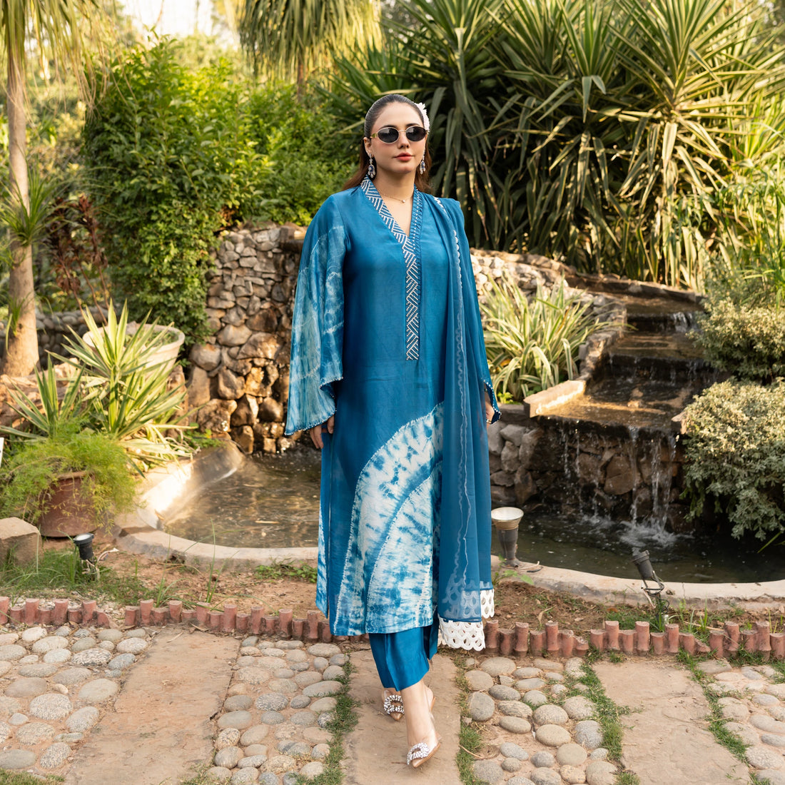 3 piece (Shirt, Trouser & Dupatta)Alyssa represents grounded strength and quiet resilience. The kumo shibori...