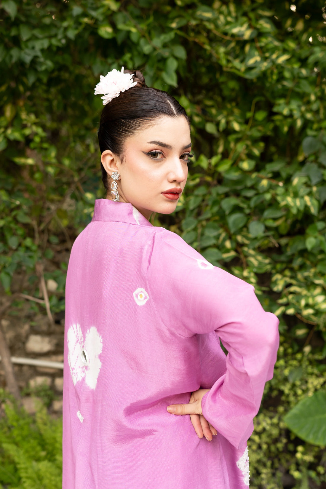 Symbolises inner authority and grace.Soft lilac tones paired with restrained itajime shibori reflect balance, self-awareness,...